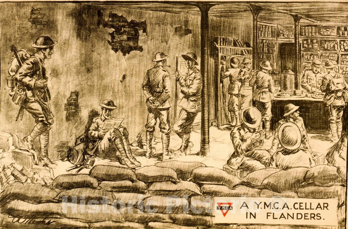 Vintage Poster - A Y.M.C.A. Cellar in Flanders - Wright., Historic Wall Art