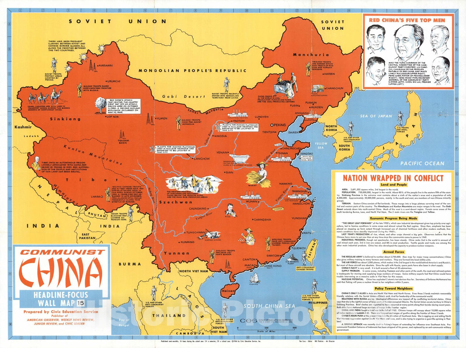 Communist China. Headline-Focus Wall Map 15. | Communist China. Headline-Focus Wall Map 15. | Color. Propaganda piece. Unmounted school wall map.