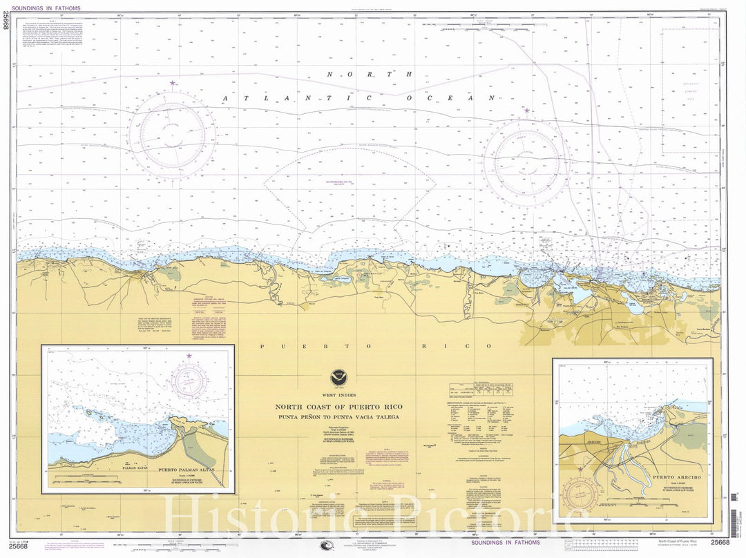 Historic Nautical Map - North Coast Of Puerto Rico, PR, 1998 NOAA Chart - Vintage Wall Art