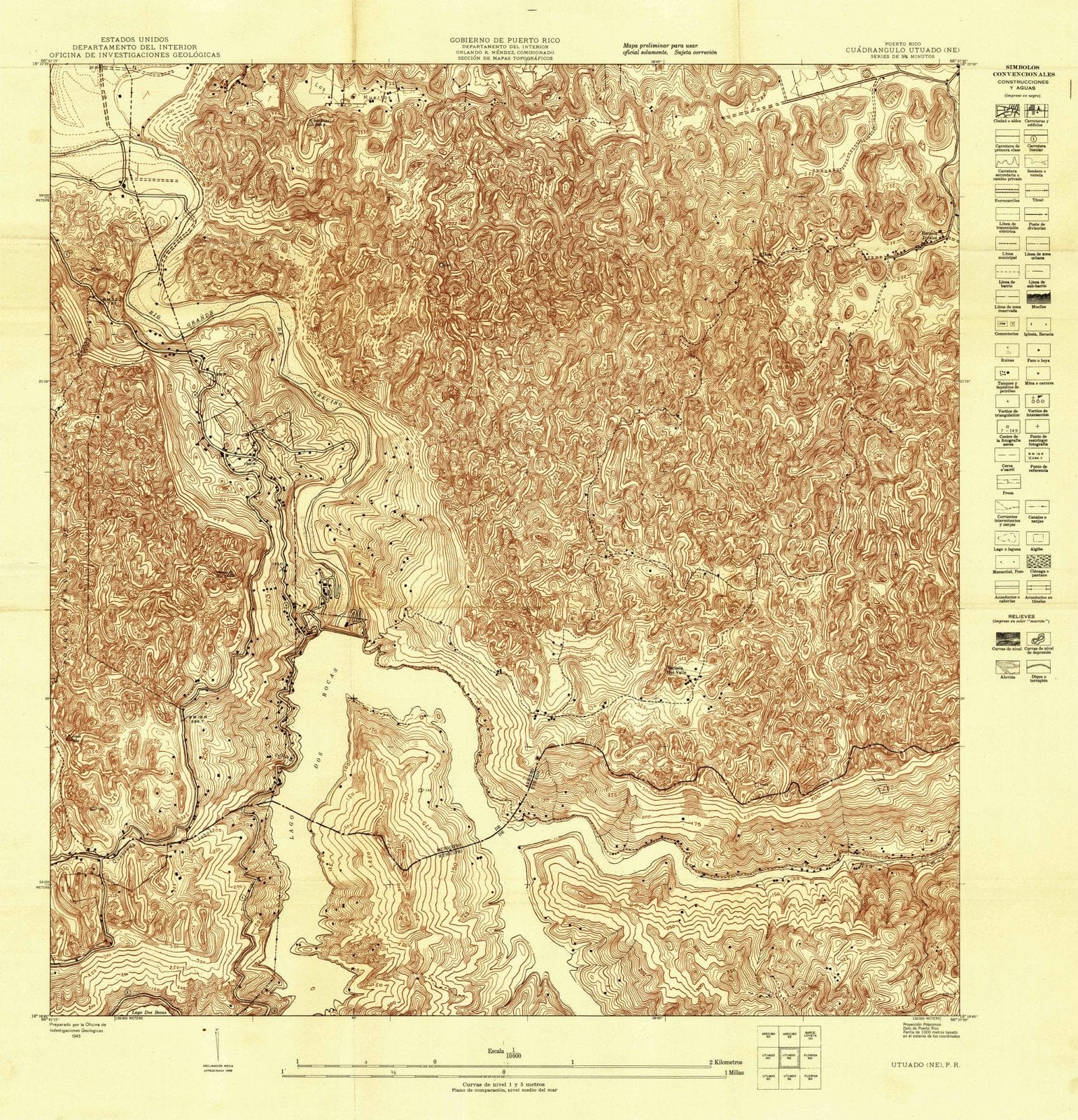 1943 Utuado, PR - Puerto Rico - USGS Topographic Map