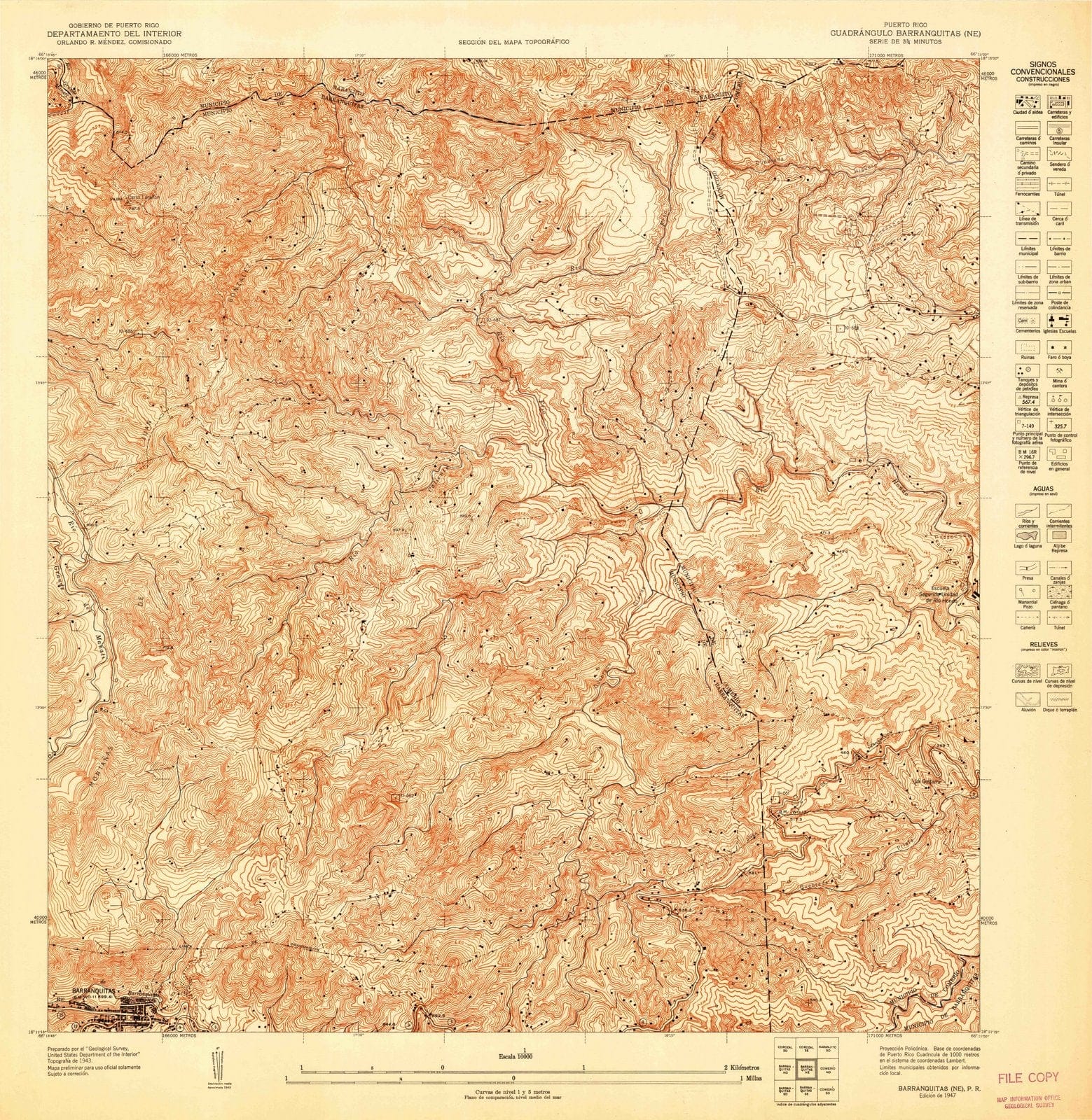 1947 Barranquitas, PR - Puerto Rico - USGS Topographic Map