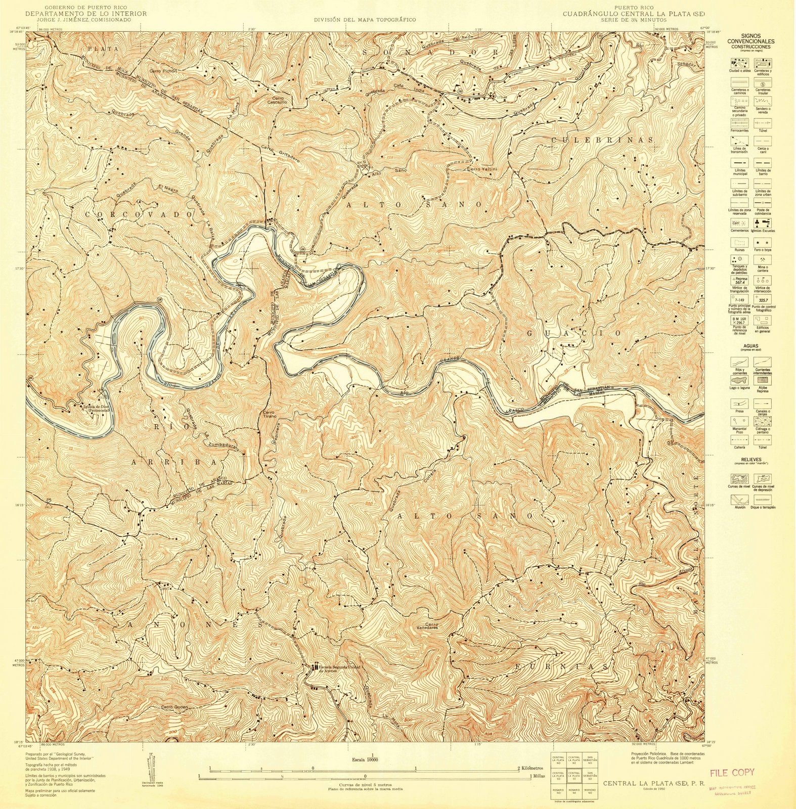 1950 Central La Plata, PR - Puerto Rico - USGS Topographic Map v2