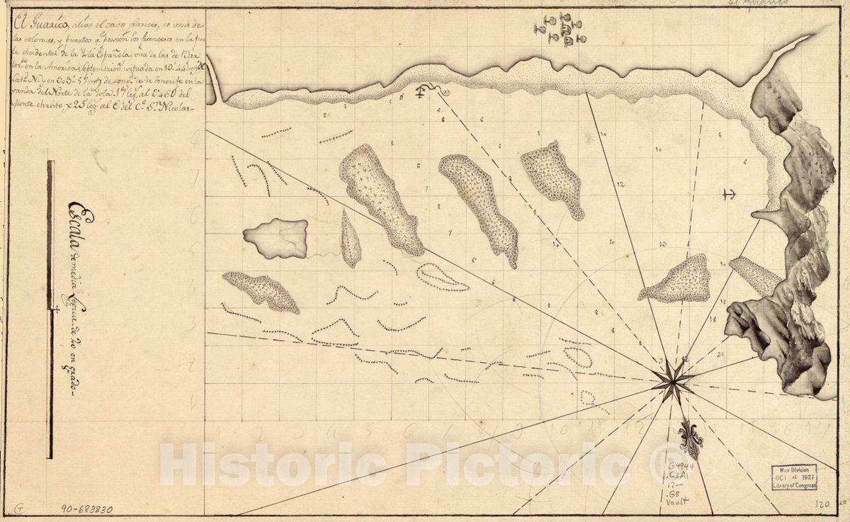 Historic 1700 Map - El Guárico, Alias, el cavo Frances, ES UNA de las colonias y puertos qe. posseen Los Frances ES en la Parte Occidental de la Ysla Española, UNA de las de Barlosto.