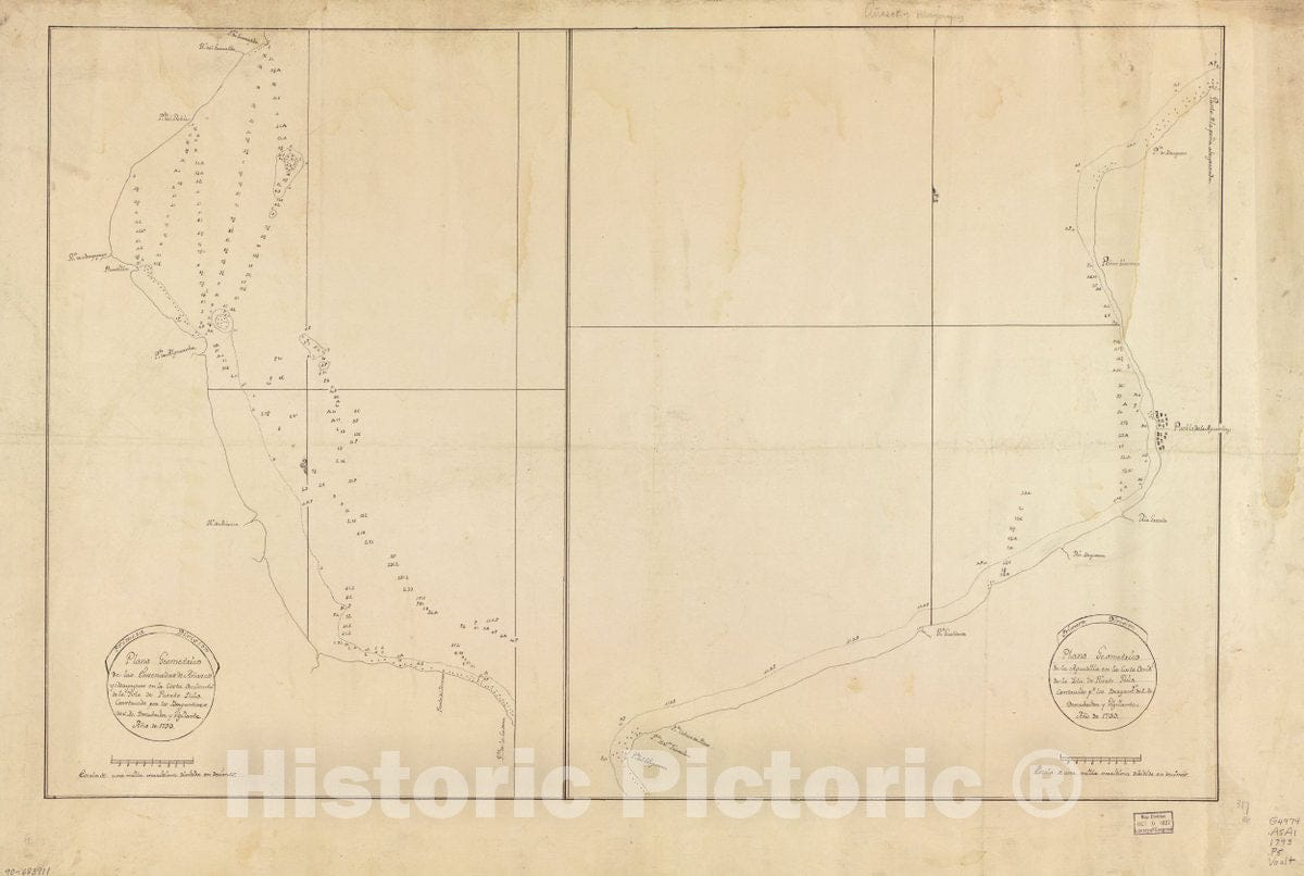 Historic 1793 Map - Plano geométrico de las ensenadas de Añasco y Mayagües en la Costa Occidental de la ysla de Puerto Rico