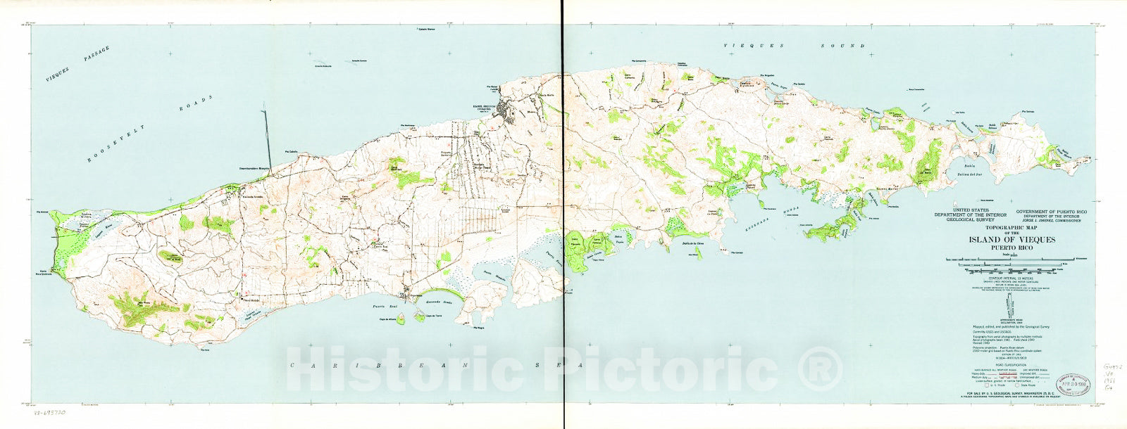 Historic 1951 Map - Topographic map of The Island of Vieques, Puerto Rico