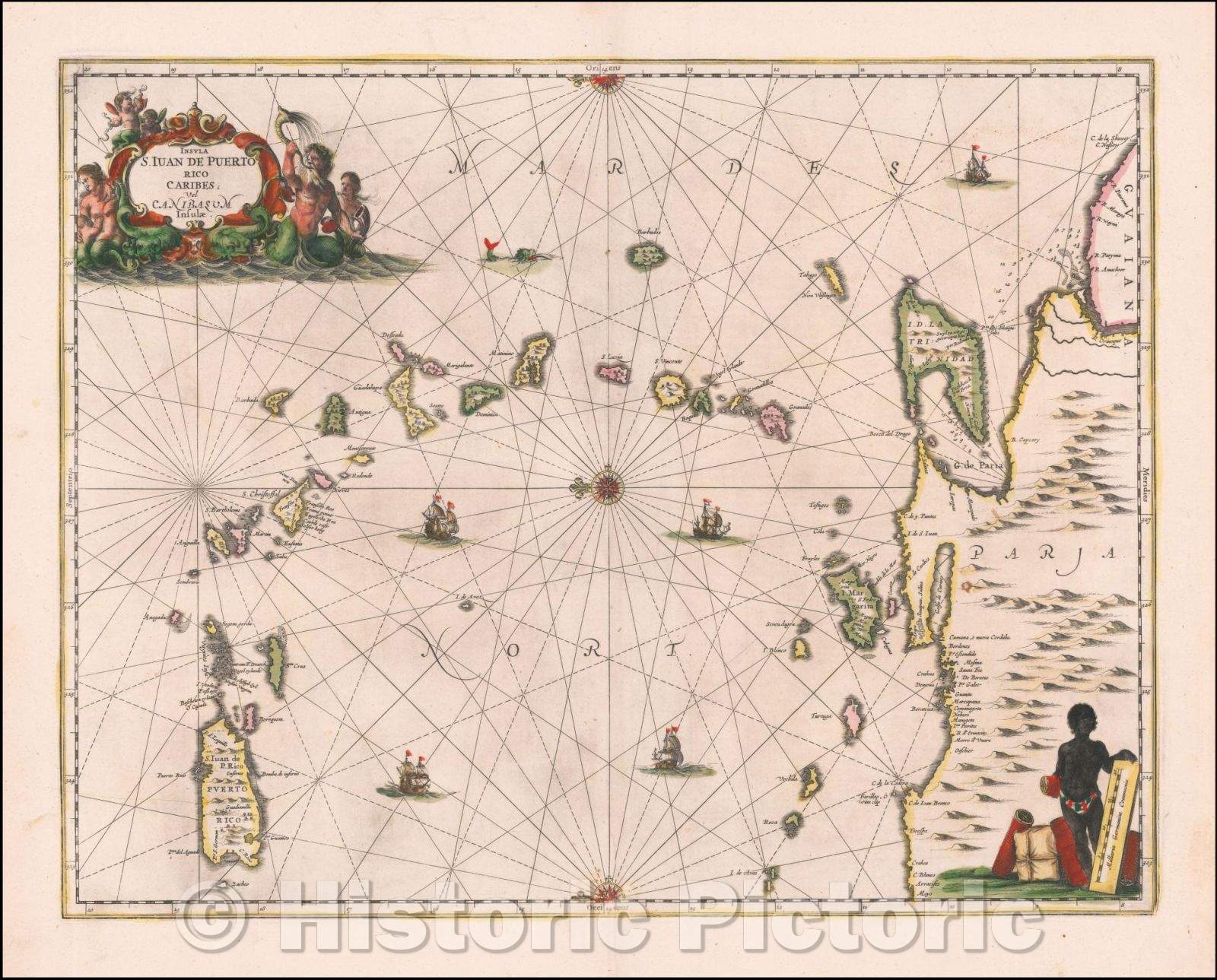 Historic Map - Insula S. Juan De Puerto Rico Caribes vel Canibasum Insulae/S. Juan de Puerto Rico Caribes island or islands Canibasum, 1650, Jan Jansson - Vintage Wall Art