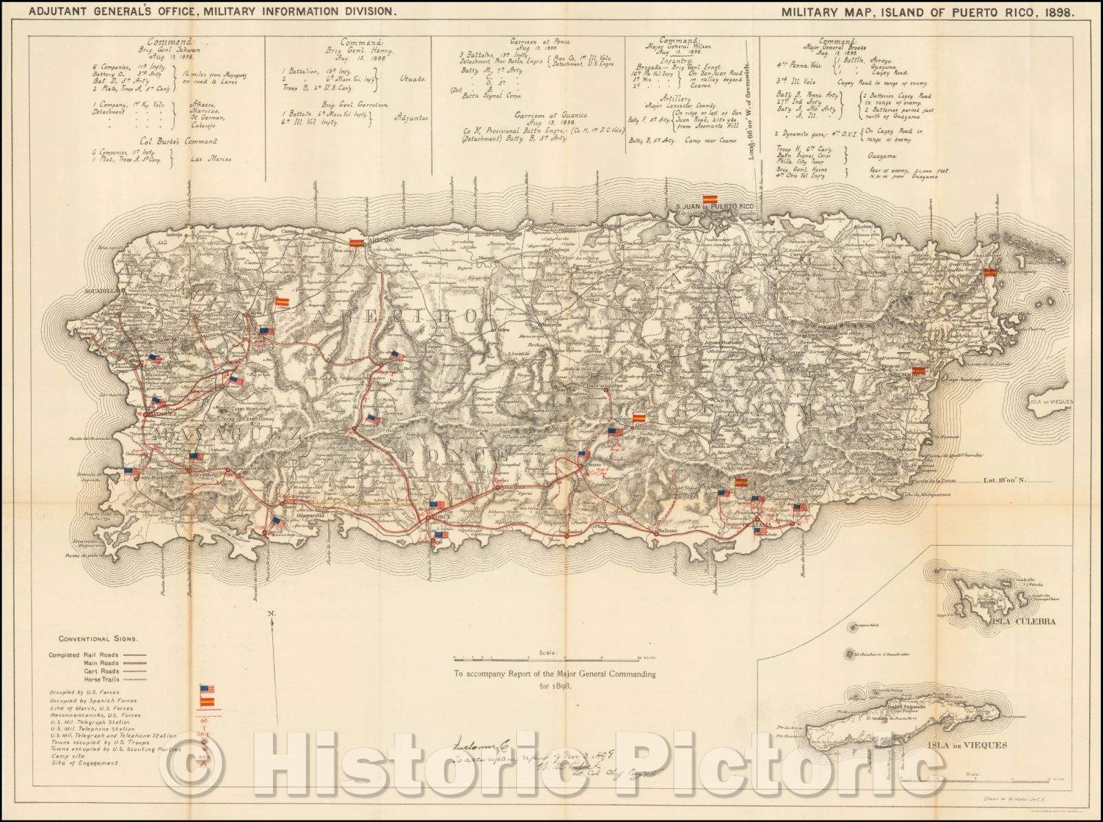 Historic Map - Military Map, Island of Puerto Rico, 1898, United States War Dept. - Vintage Wall Art
