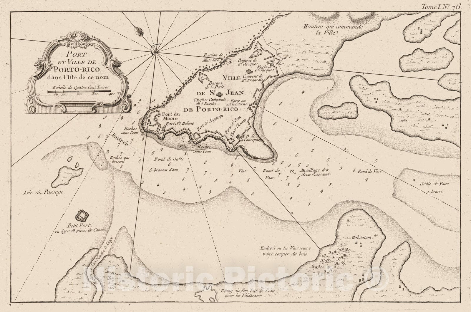 Historic Map : Puerto Rico , San Juan (P.R.), West Indies 1764 Port et ville de Porto-rico dans I'isle de ce nom. , Vintage Wall Art