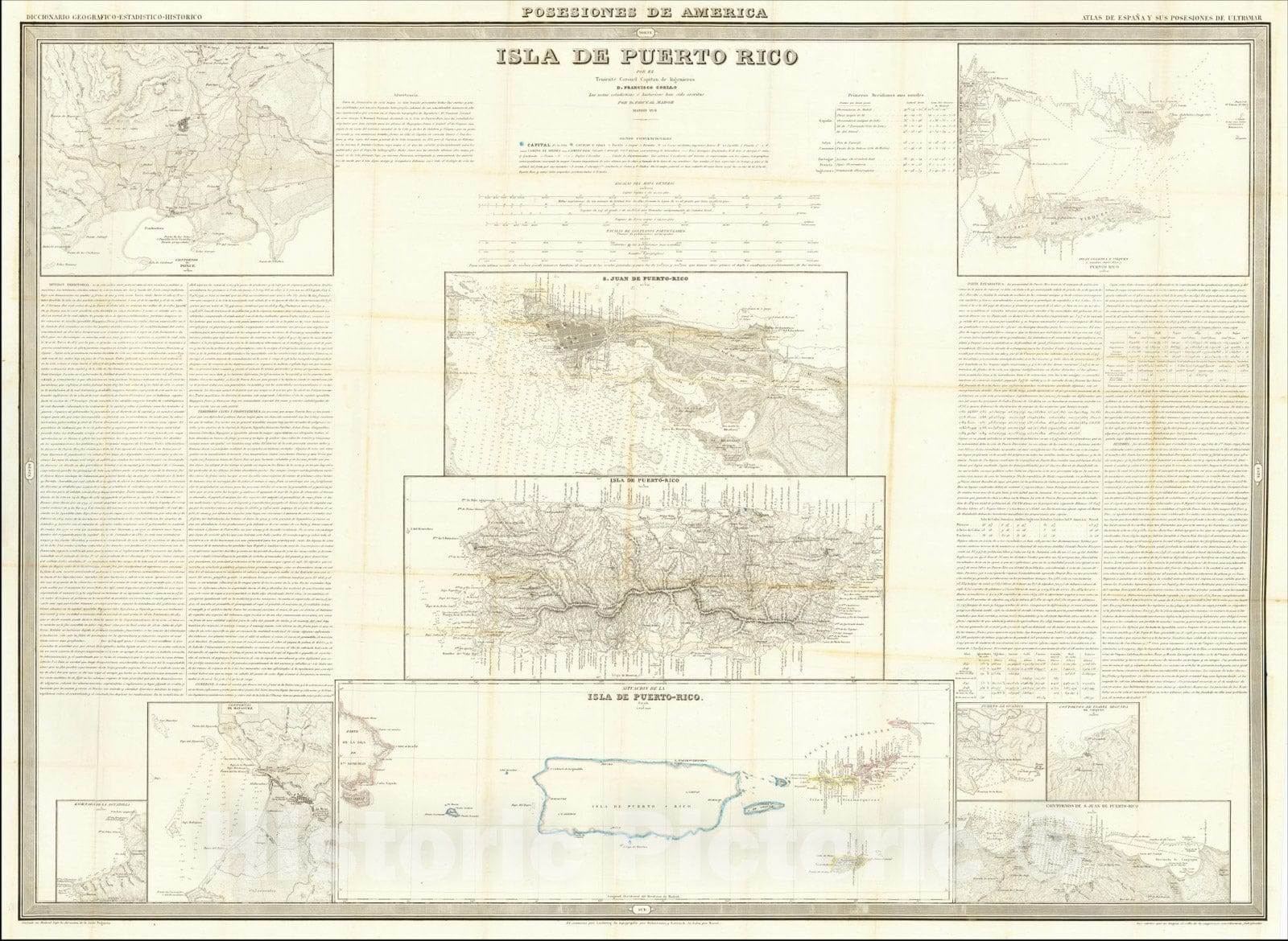 Historic Map : Isla de Puerto Rico por el Teniente Coronel Capitan de Ingenieros D. Francisco Coello,1851, 1851, Vintage Wall Art
