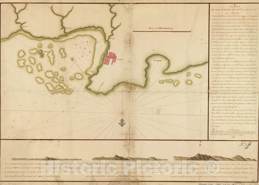 Historical Map, 1756 Plano del puerto del GuaIrico, cuyo conocimto. y entrada es del modo siguiente, Vintage Wall Art