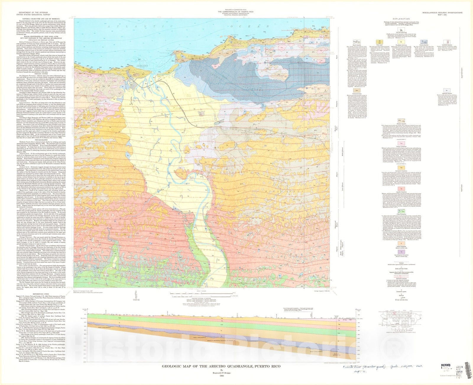 Map : Geologic map of the Arecibo quadrangle, Puerto Rico, 1968 Cartography Wall Art :
