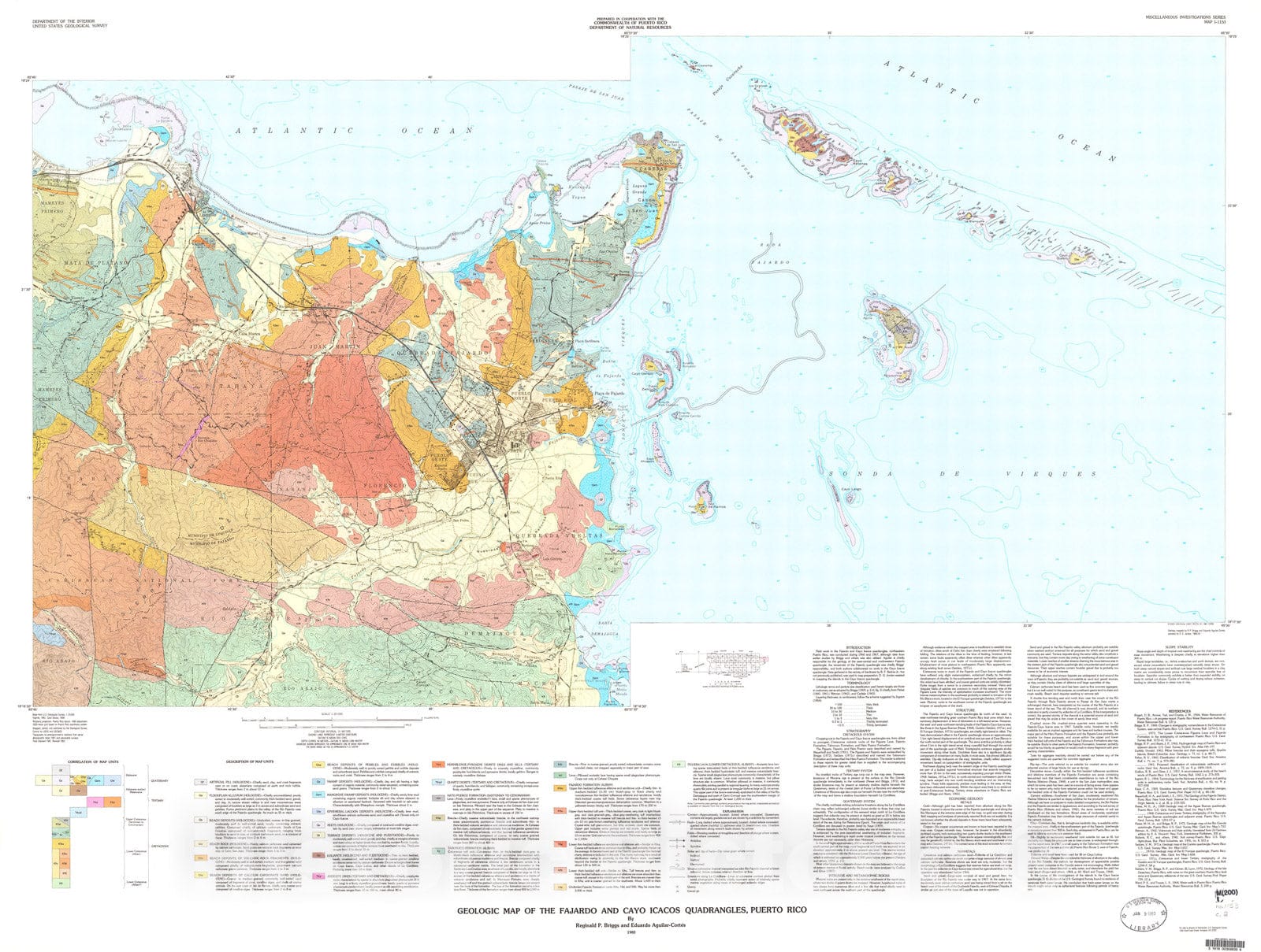Map : Geologic map of the Fajardo and Cayo Icacos quadrangles, Puerto Rico, 1980 Cartography Wall Art :