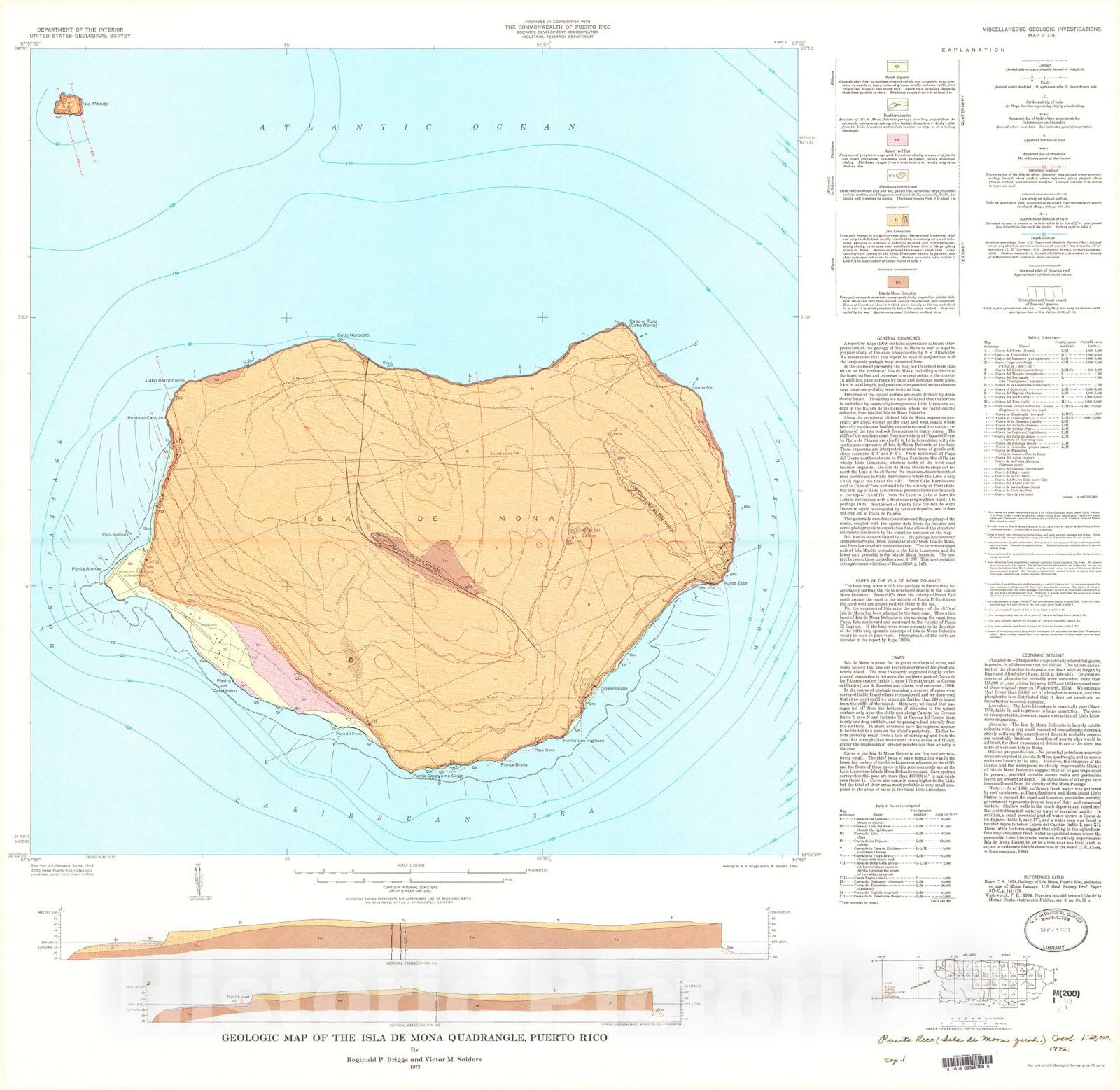 Map : Geologic map of the Isla De Mona quadrangle, Puerto Rico, 1972 Cartography Wall Art :
