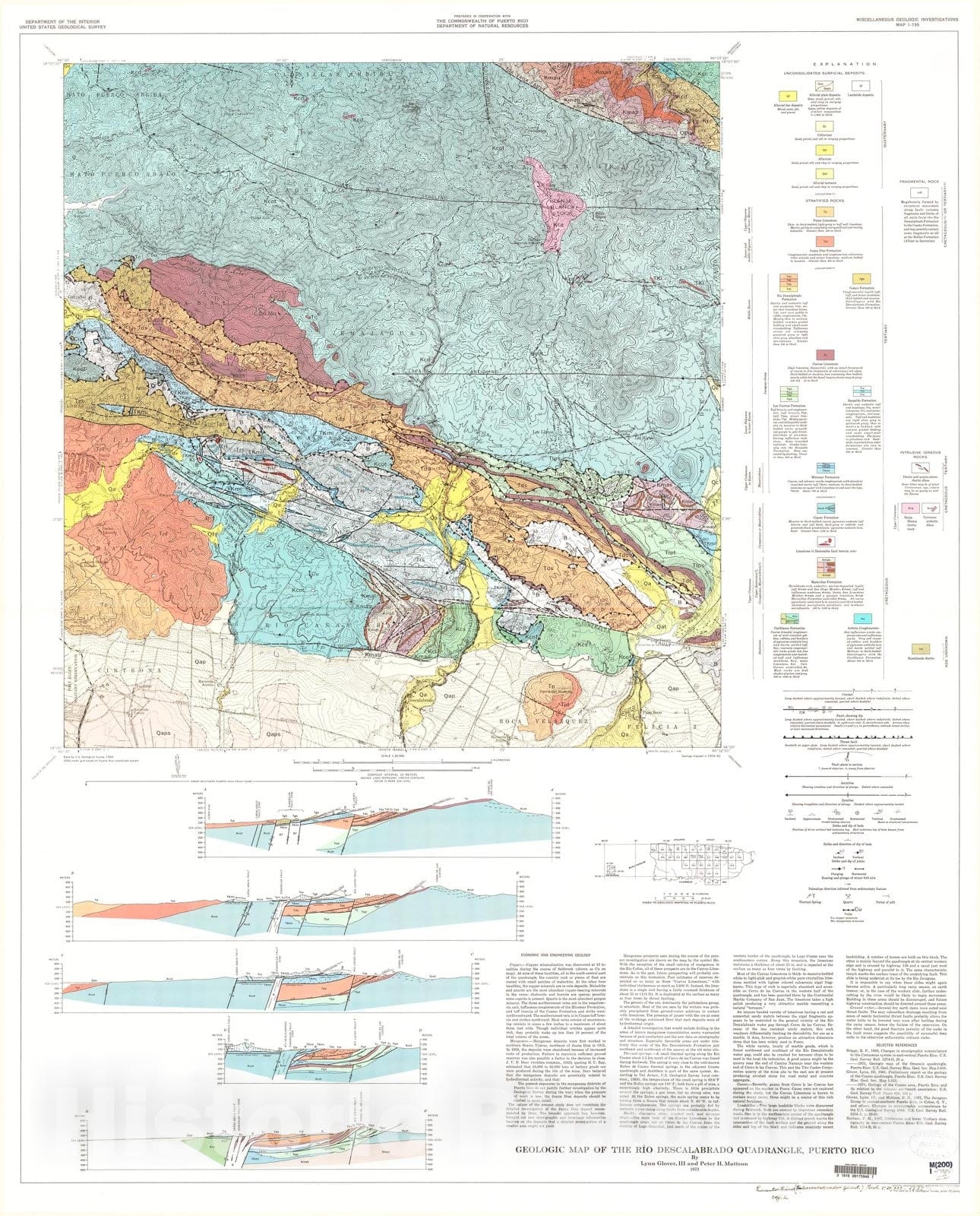 Map : Geologic map of the Rio Descalabrado quadrangle, Puerto Rico, 1973 Cartography Wall Art :