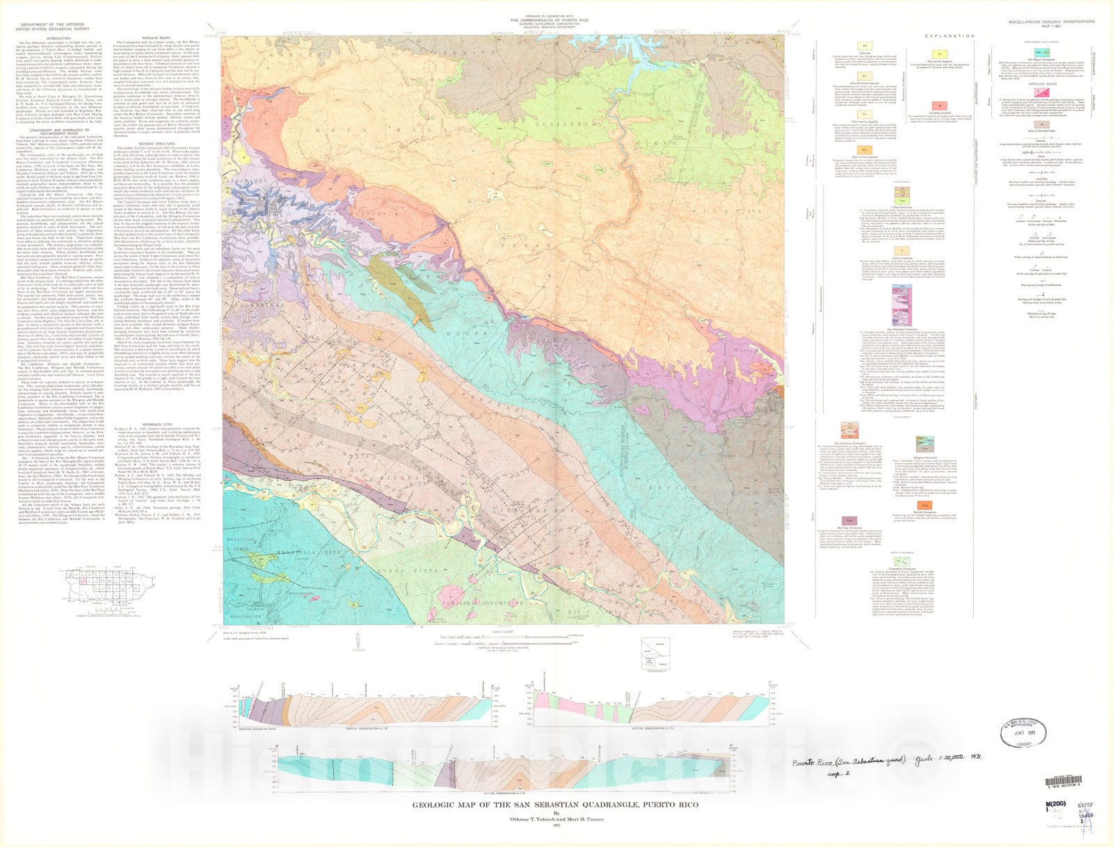 Map : Geologic map of the San Sebastian quadrangle, Puerto Rico, 1971 Cartography Wall Art :