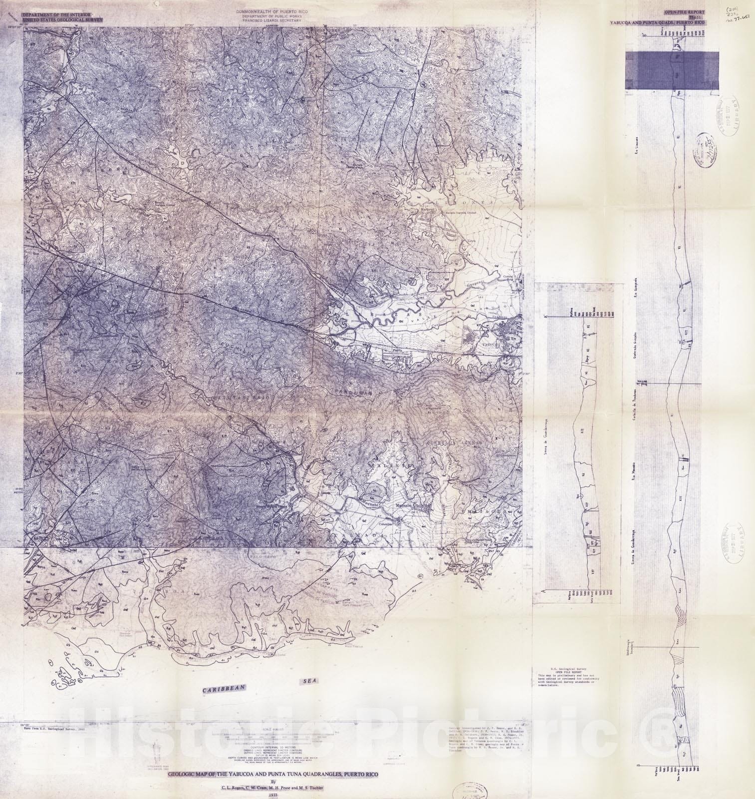 • Map : Geologic map of the Yabucoa and Punta Tuna quadrangles, Puerto Rico, 1977 Cartography Wall Art :