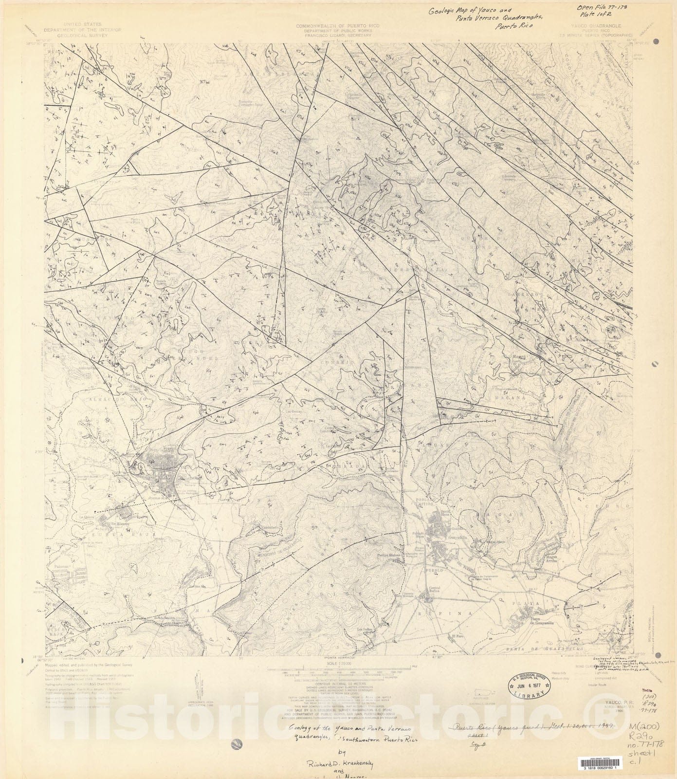 Map : Geologic map of the Yauco and Punta Verraco quadrangles, Puerto Rico, 1977 Cartography Wall Art :