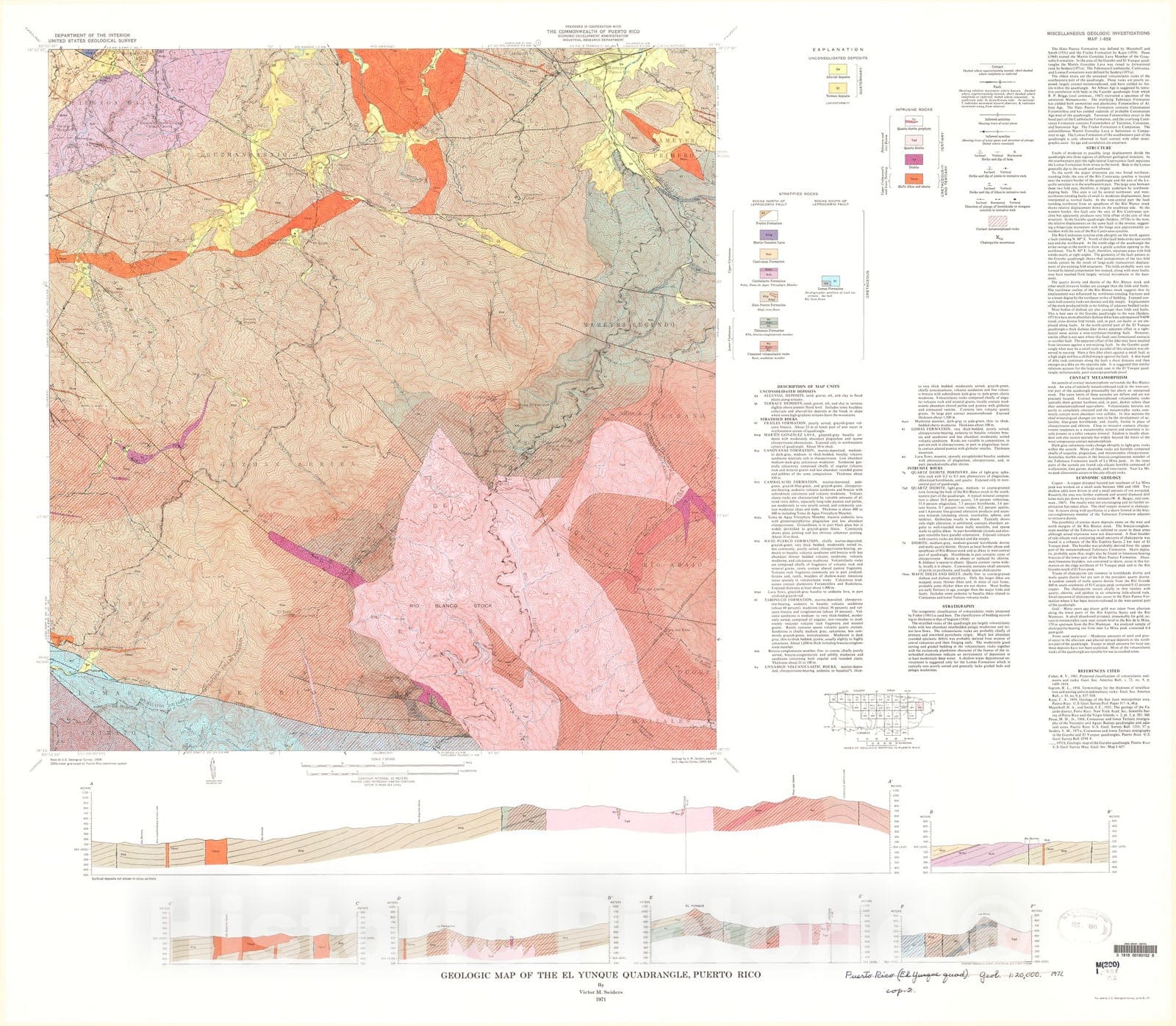 Map : Geologic map of the El Yunque quadrangle, Puerto Rico, 1971 Cartography Wall Art :