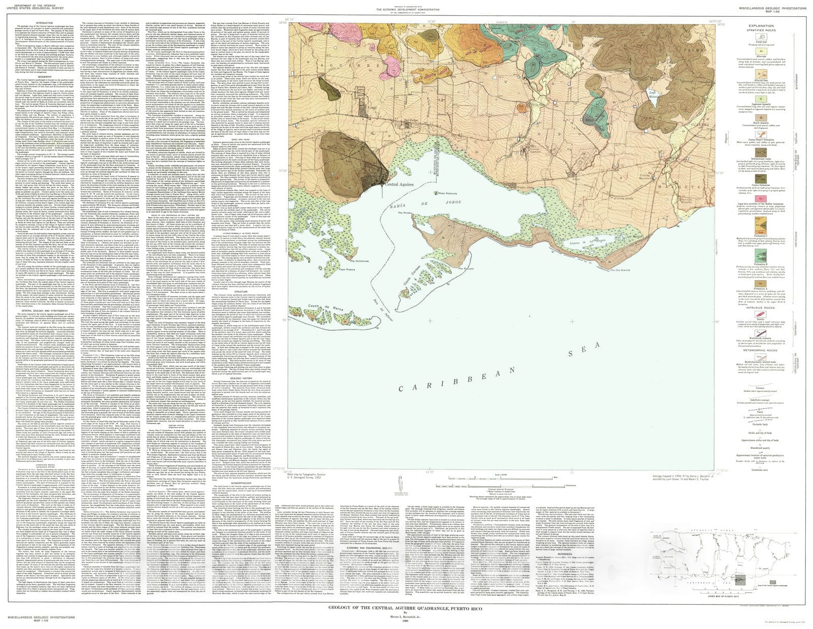 Map : Geology of the Central Aguirre quadrangle, Puerto Rico, 1960 Cartography Wall Art :