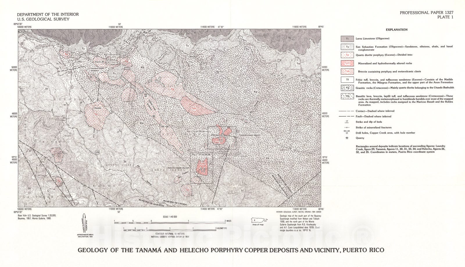 Map : Geology of the Tanama and Helecho porphyry copper deposits and vicinity, Puerto Rico, 1985 Cartography Wall Art :