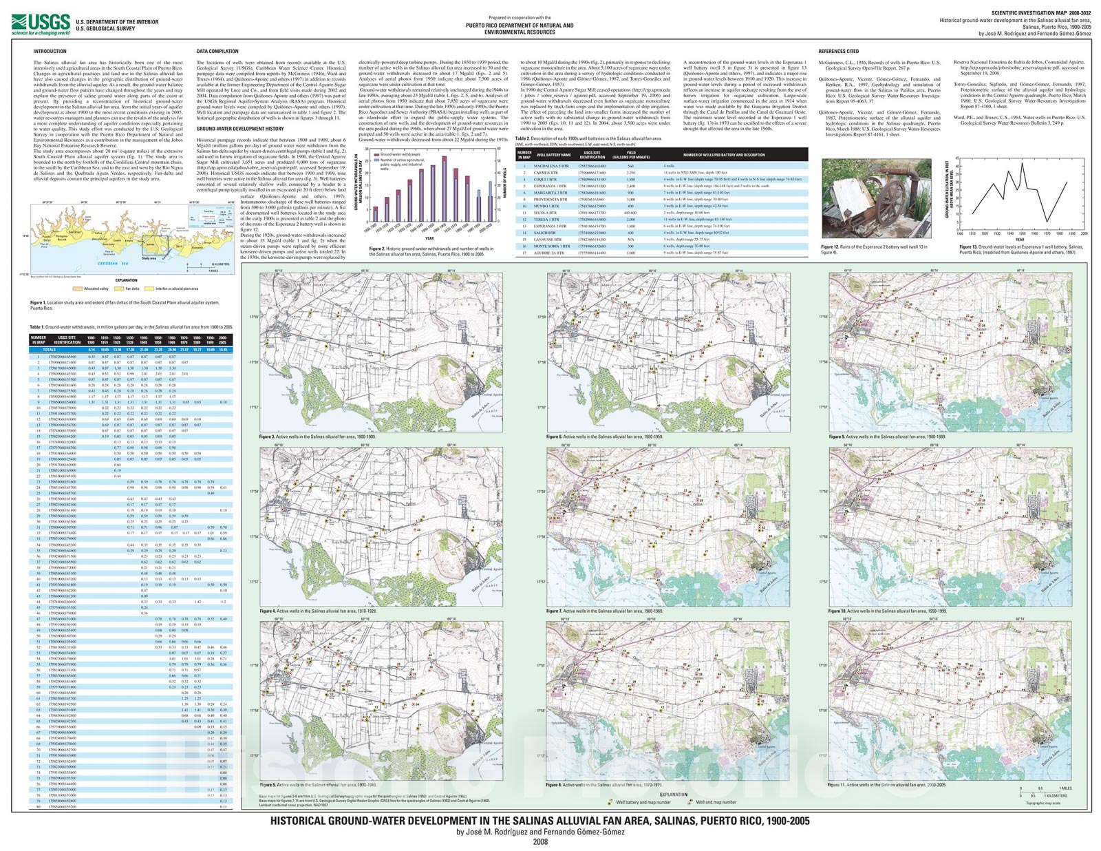 Map : Historical ground-water development in the Salinas alluvial fan area, Salinas, Puerto Rico, 1900-2005, 2009 Cartography Wall Art :