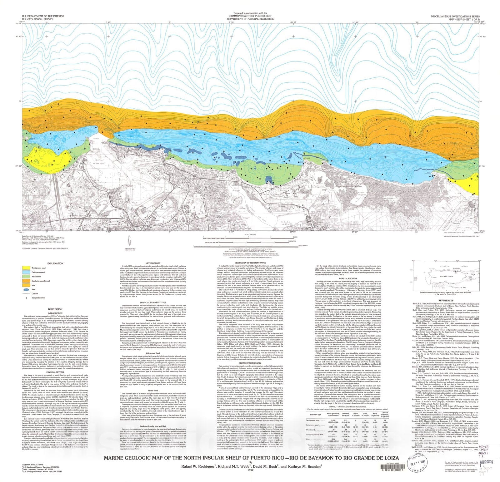 Marine geologic map of the north insular shelf of Puerto Rico - Rio De Bayamon to Rio Grande De Loiza
