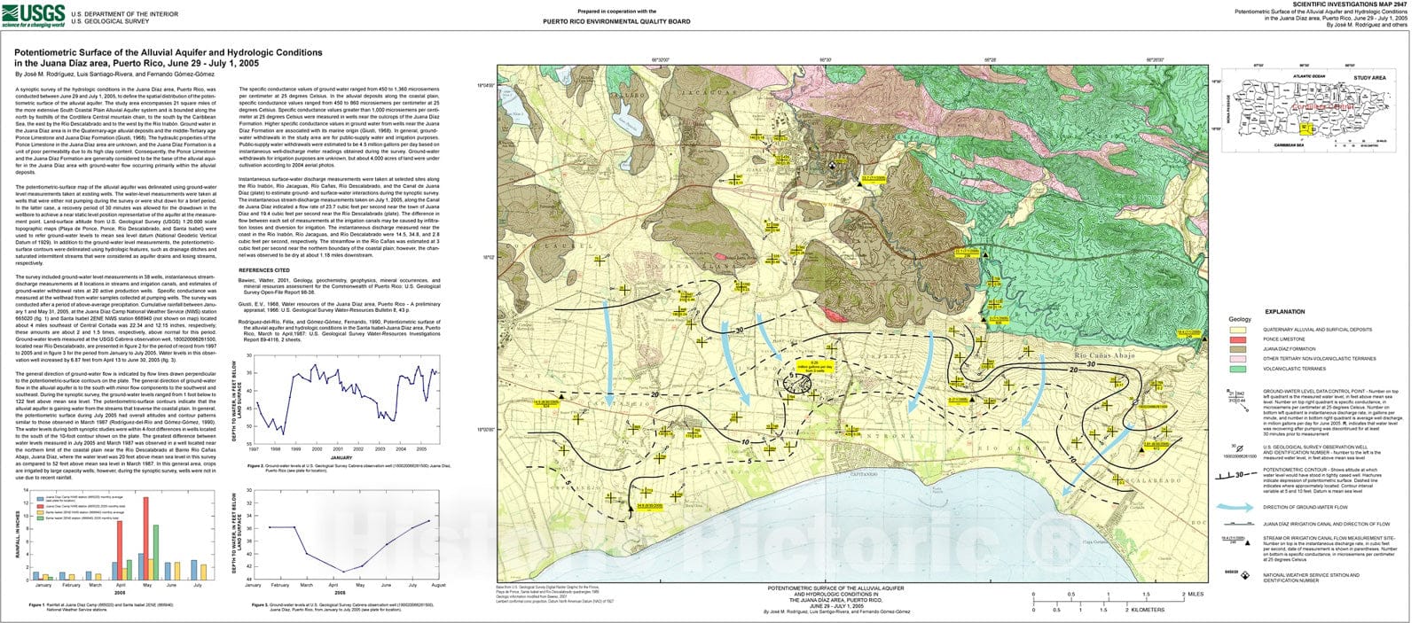 Potentiometric surface of the alluvial aquifer and hydrologic conditions in the Juana Diaz area, Puerto Rico, June 29 - July 1, 2005