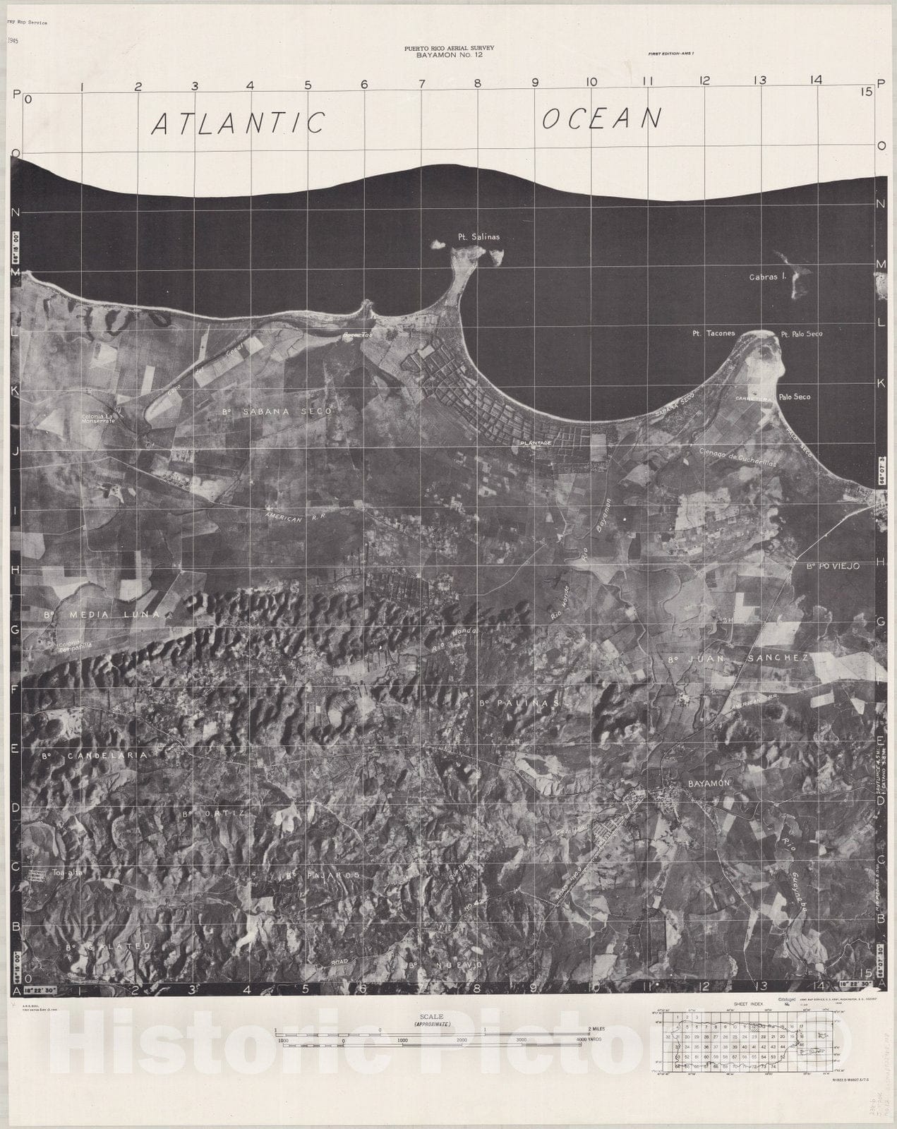 Map : Puerto Rico 1940 45, Puerto Rico aerial survey , Antique Vintage Reproduction