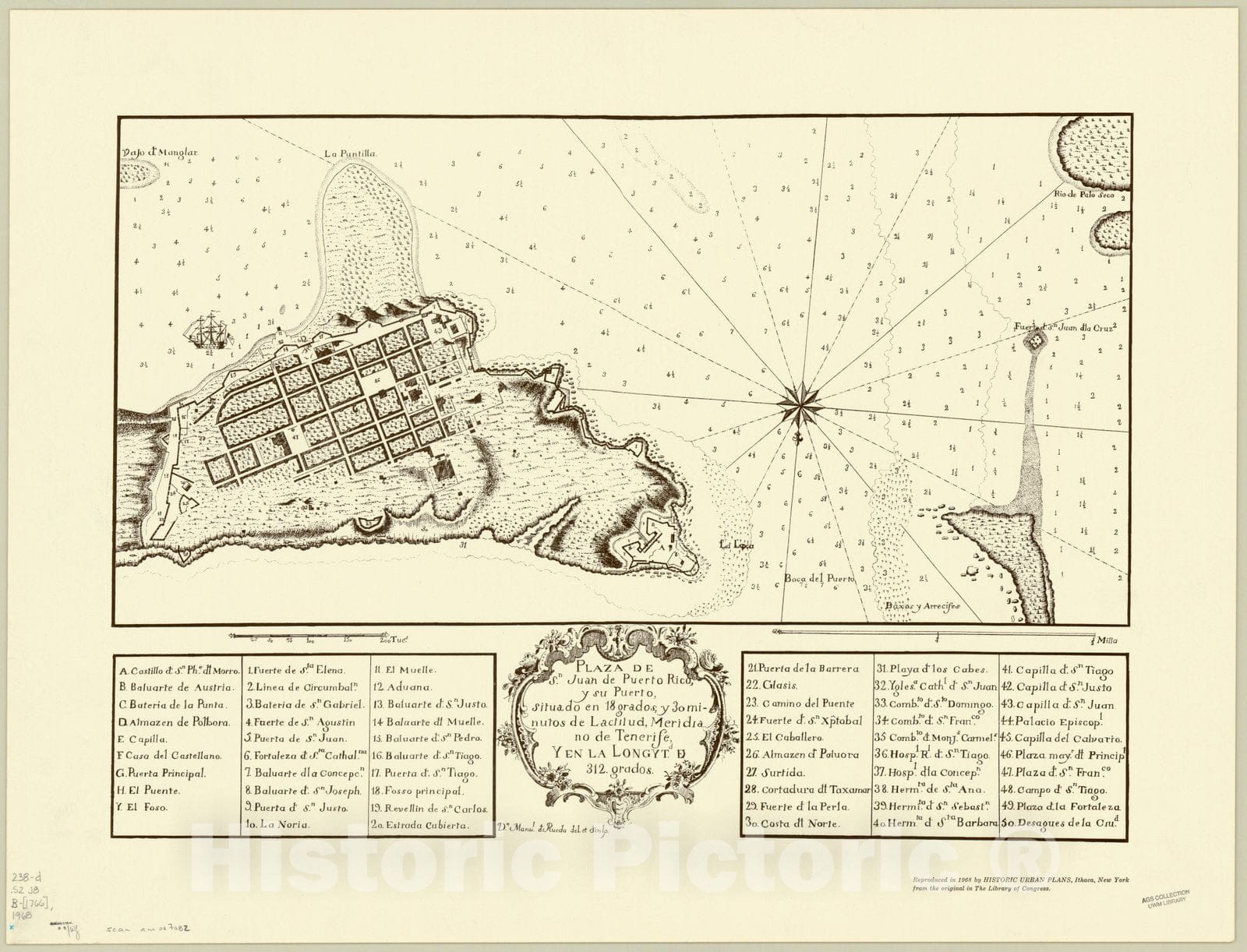 Map : San Juan, Puerto Rico 1766 1968 1, Antique Vintage Reproduction