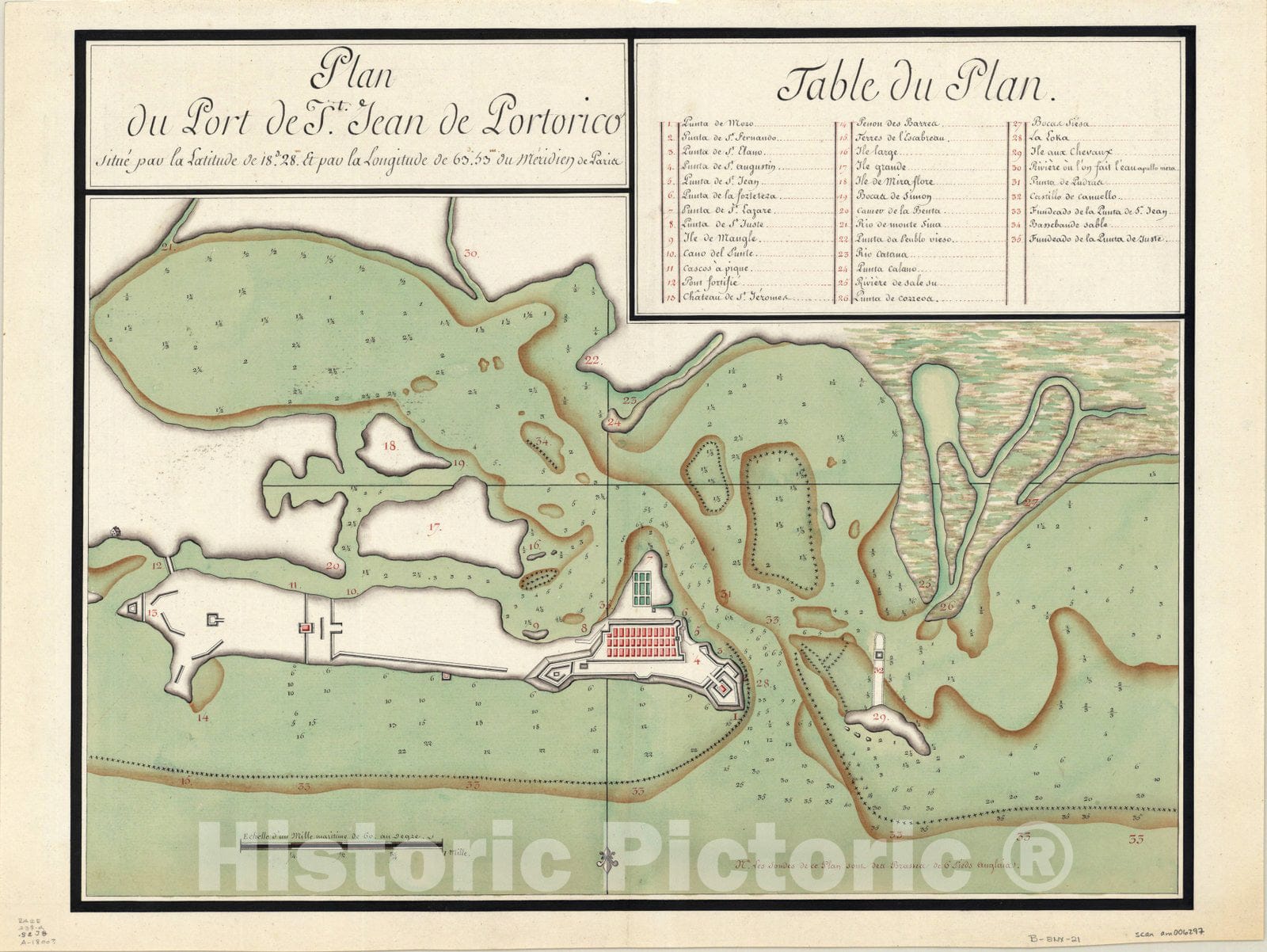 Plan du port de St. Jean de Portorico : situe par la latitude de 18 degrees 28 minutes et par la longitude de 63 degrees 53 minutes du meridien de Paris.