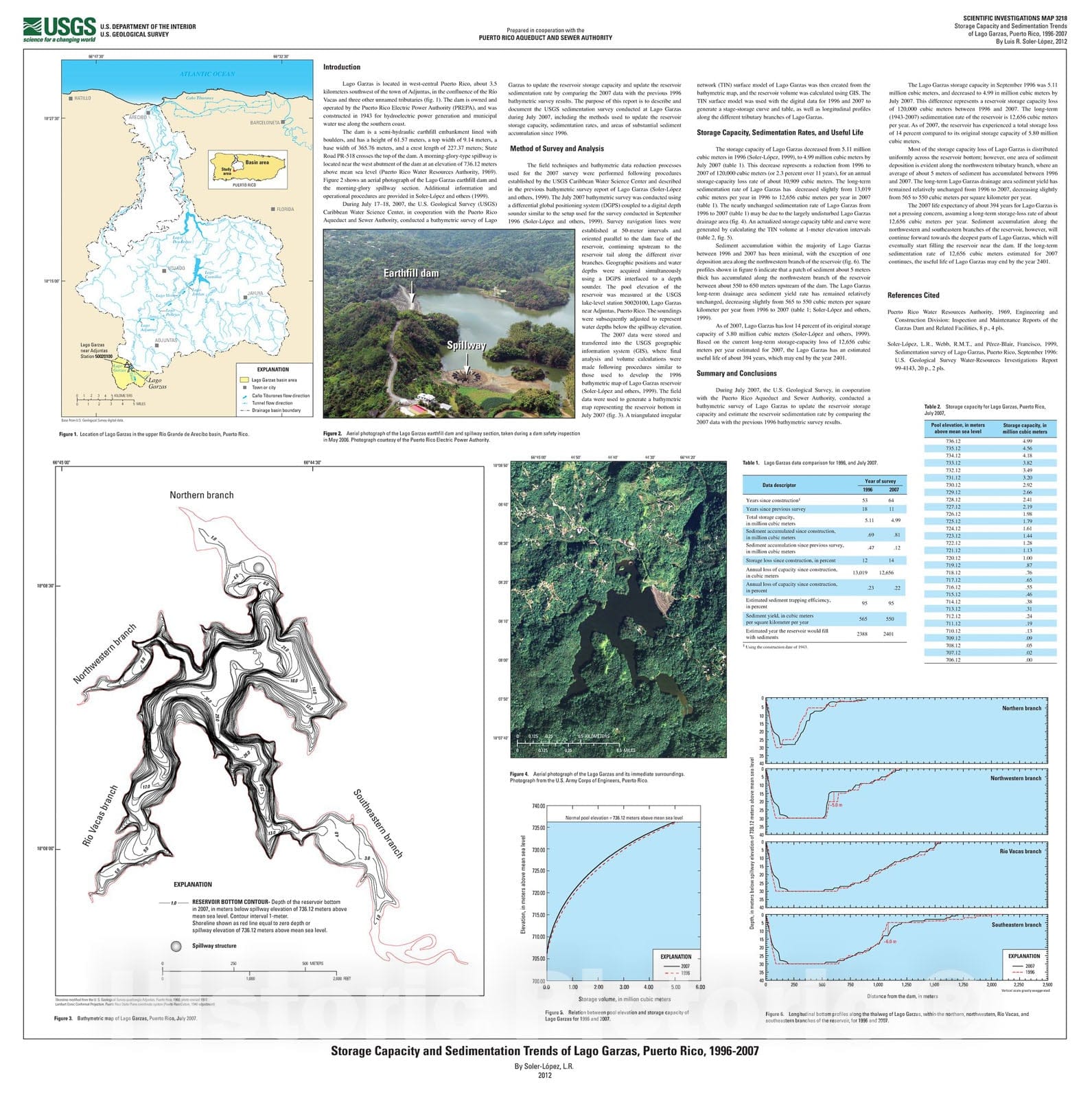 Map : Storage capacity and sedimentation trends of Lago Garzas, Puerto Rico, 1996-2007, 2012 Cartography Wall Art :