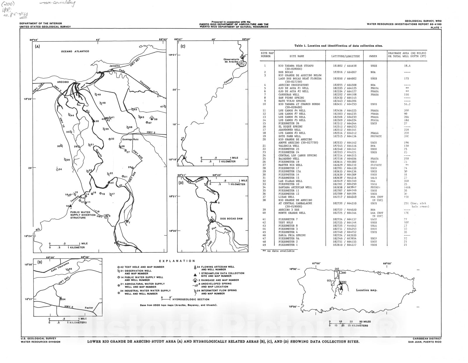 Map : Water resources of the lower Rio Grande de Arecibo alluvial valley, Puerto Rico, 1986 Cartography Wall Art :