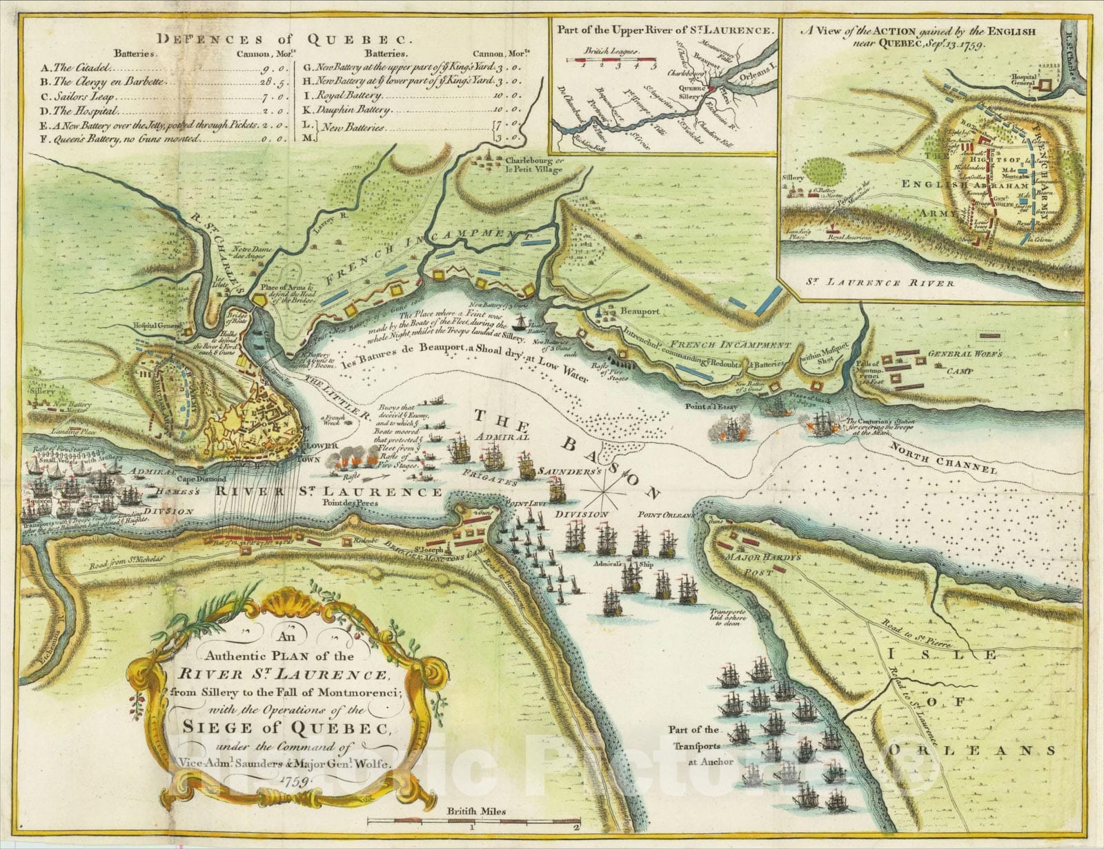 An Authentic Plan of the River St. Laurence from Sillery to the Fall of Montmorenci, with the Operations of the Siege of Quebec, 1759