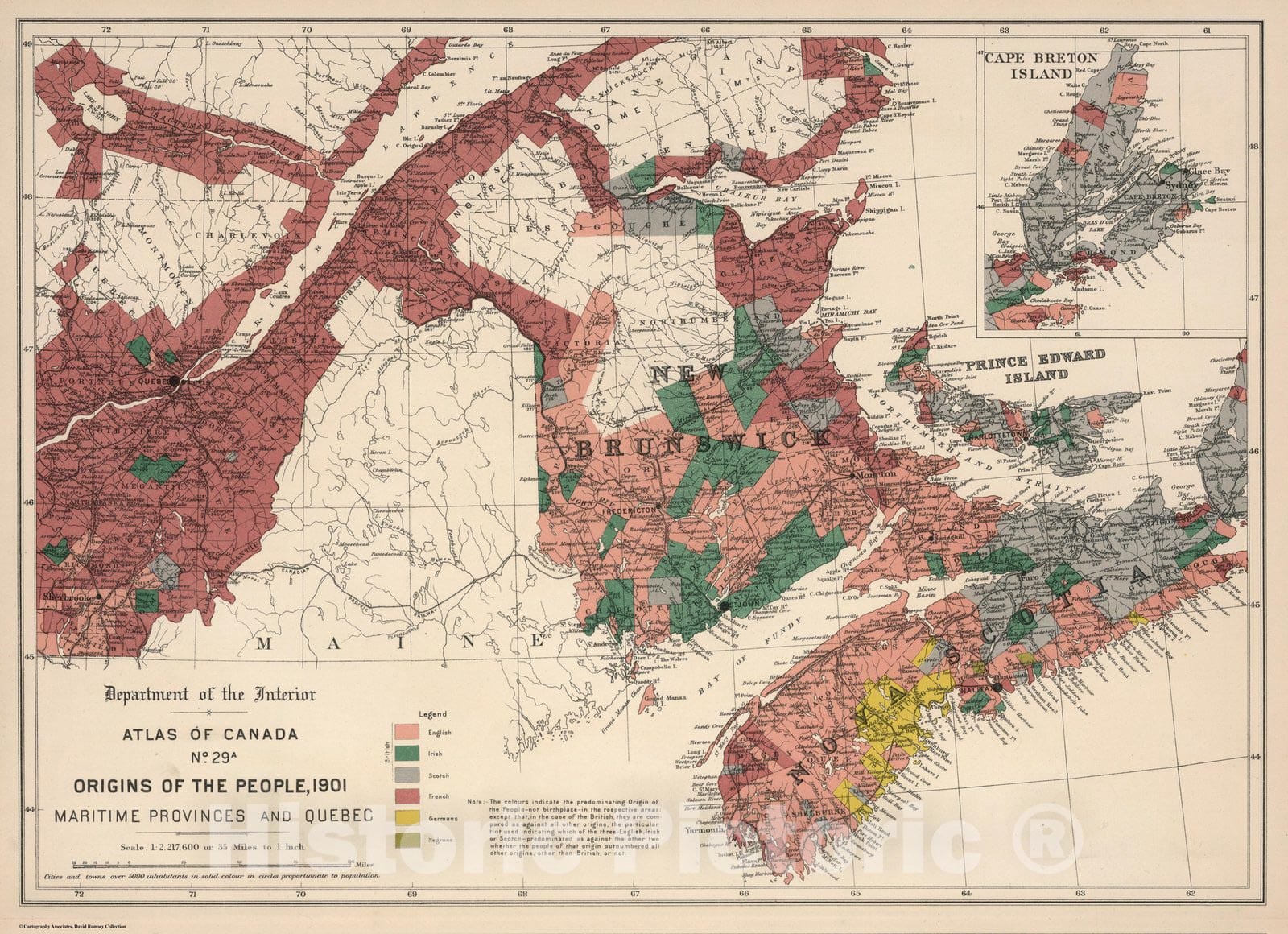 Historic Map : No. 29 A, Origins of the people, 1901 ; Maritime Provinces and Quebec 1906 - Vintage Wall Art