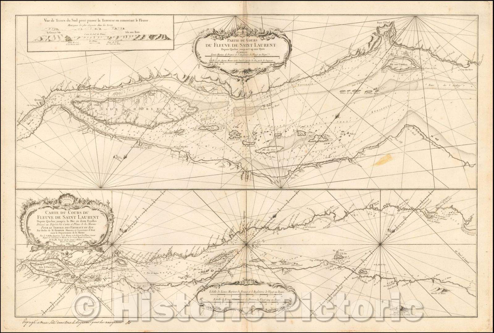 • Historic Map - Partie du Cours du Fleuve de Saint Laurent depuis Quebec jusqu'au Cap aux Oyes Carte du Cours du Fleuve Saint Laurent depuis Quebec, 1761 v2