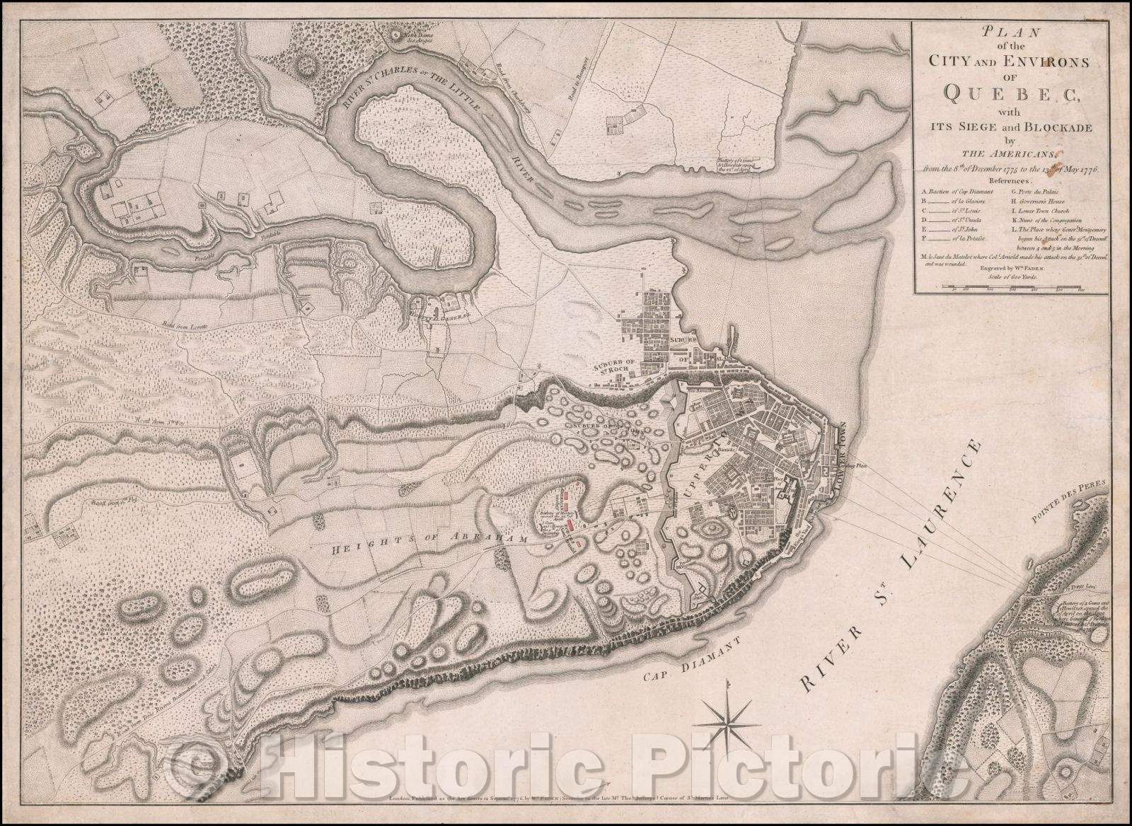 Historic Map - Plan of the City and Environs of Quebec with its Siege and Blockage, 1776, William Faden - Vintage Wall Art
