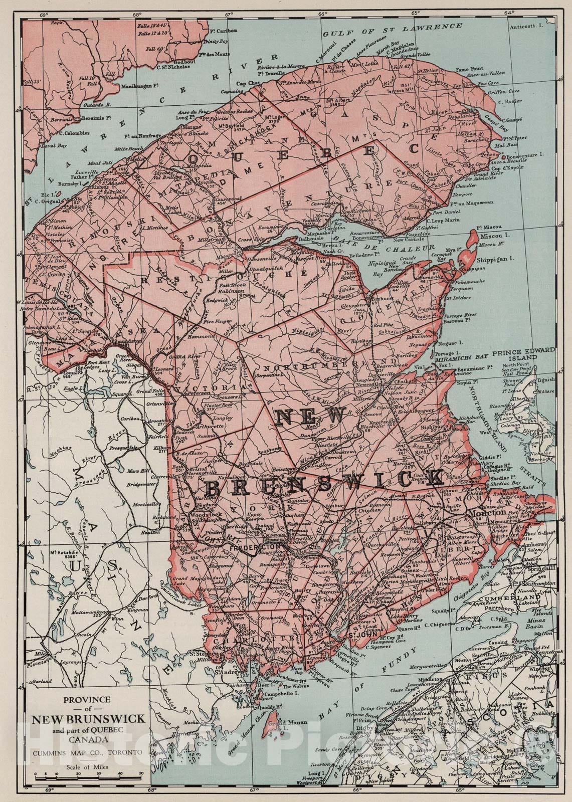 Historic Map : Province of New Brunswick and Part of Quebec, Canada (continued)., 1925, Vintage Wall Art