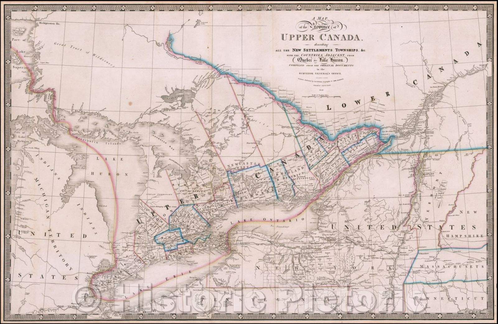 Historic Map - A Map of the Province of Upper Canada, describing all the New Settlements, Townships, From Quebec to Lake Huron, 1846, James Wyld - Vintage Wall Art