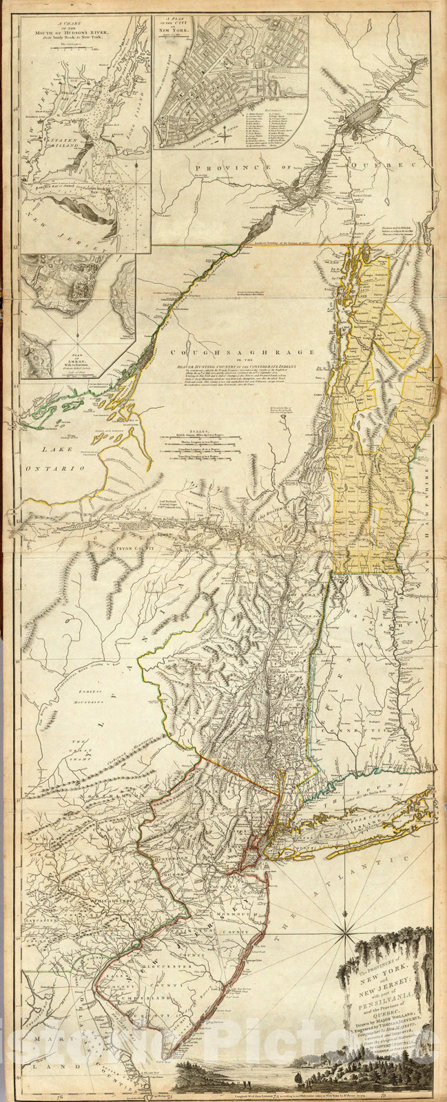 Historic Map : The Provinces of New York, and New Jersey; with part of Pensilvania and the Province of Quebec, 1776, Sayer & Bennett, v3, Vintage Wall Art