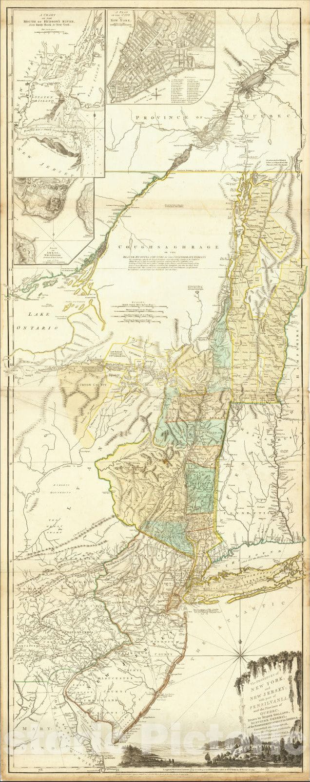 • .Historic Map : The Provinces of New York, and New Jersey; with part of Pensilvania and the Province of Quebec, 1776, Sayer & Bennett, v1, Vintage Wall Art