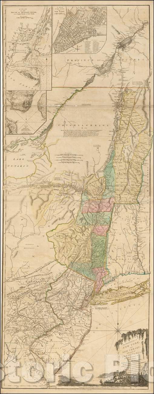 Historic Map - The Provinces of New York, and New Jersey; with part of Pensilvania, and the Province of Quebec, 1776, Sayer & Bennett - Vintage Wall Art