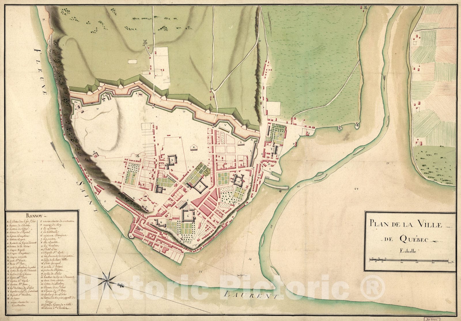 Historical Map, 1750 Plan de la Ville de Quebec, Vintage Wall Art