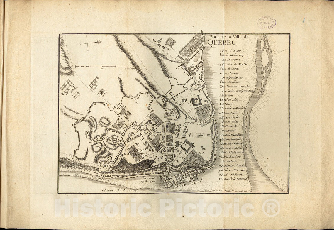 • .Historical Map, 1755 Plan de la Ville de Quebec, Vintage Wall Art
