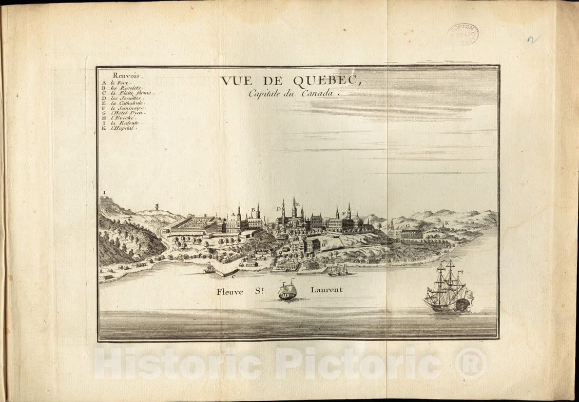 Historical Map, 1755 Vue de Quebec, capitale du Canada, Vintage Wall Art
