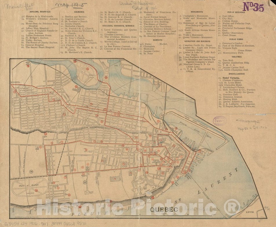 Historical Map, 1906 Quebec, Vintage Wall Art
