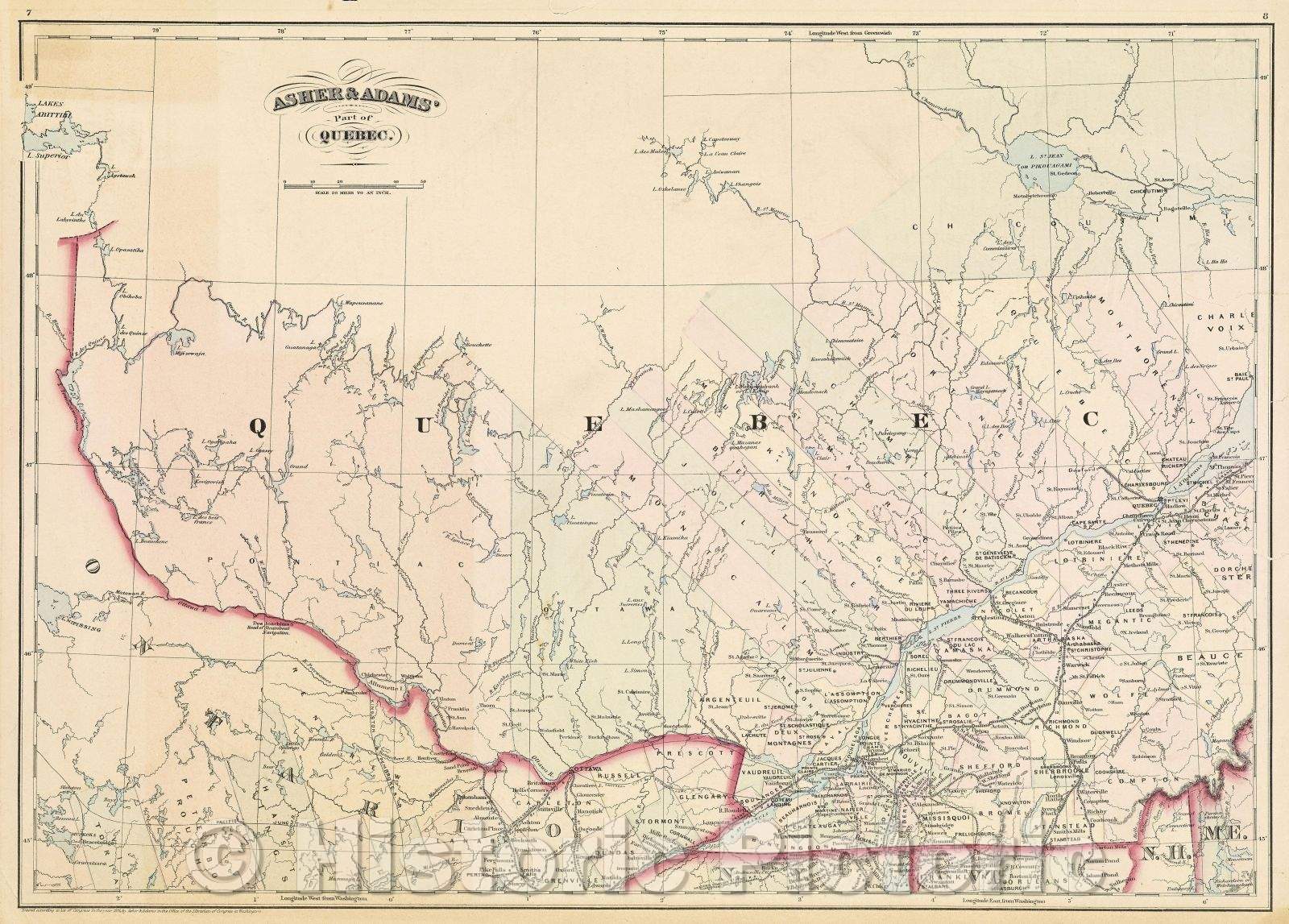 • .Historic Map : Asher and Adams' Part of Quebec., 1874 , Vintage Wall Art
