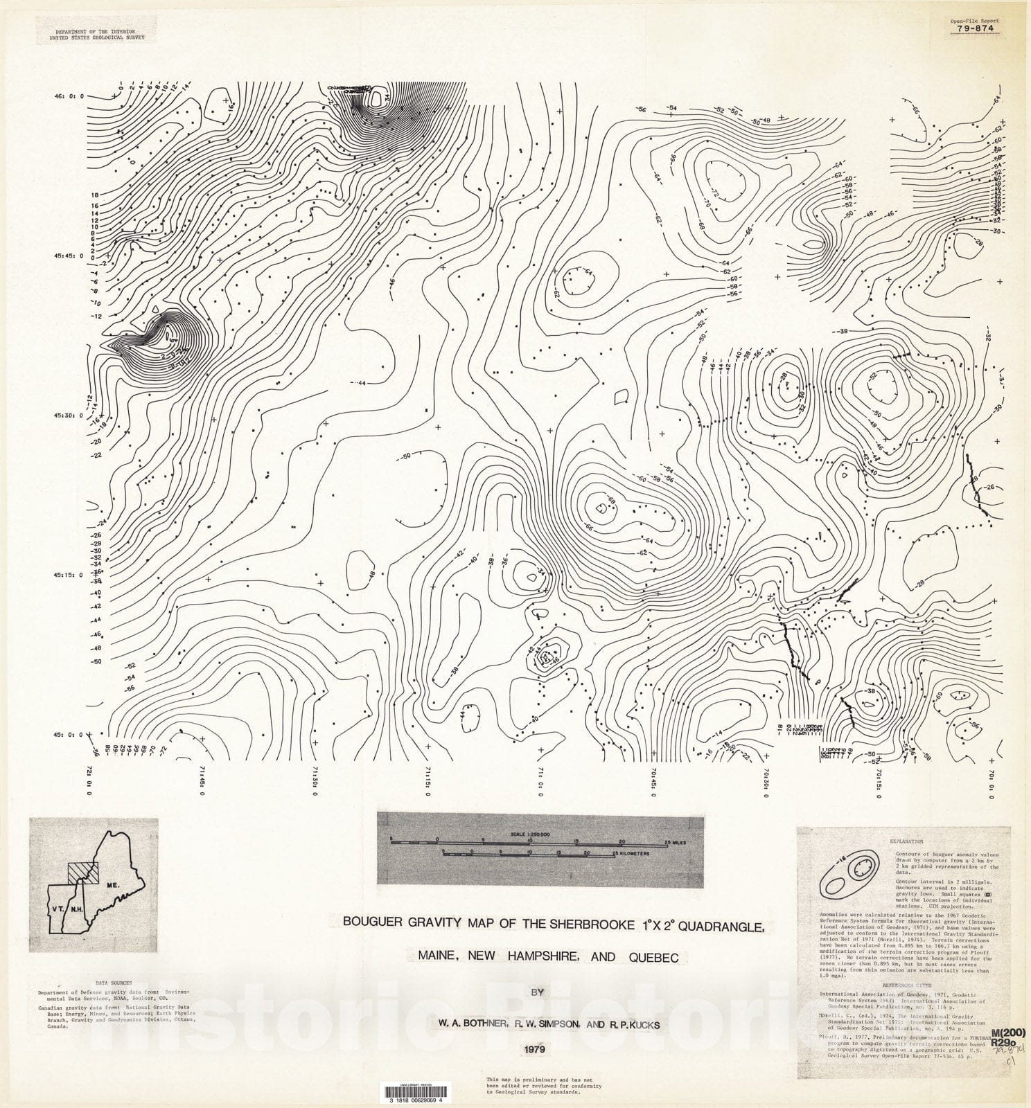 Map : Bouguer gravity map of the Sherbrooke one degree x two degree quadrangle, Maine, New Hampshire, and Quebec, one979 Cartography Wall Art :