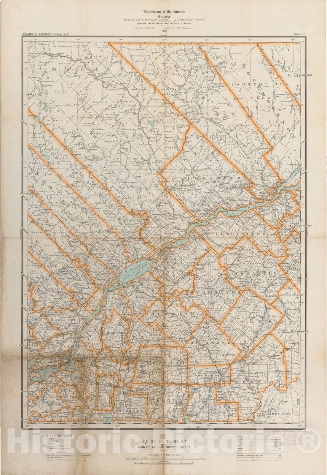 Historic Map : Canada Topographic System, Granby & Montreal & Quebec & Sherbrooke & St. Hyacinthe 1928 Business Atlas , Vintage Wall Art