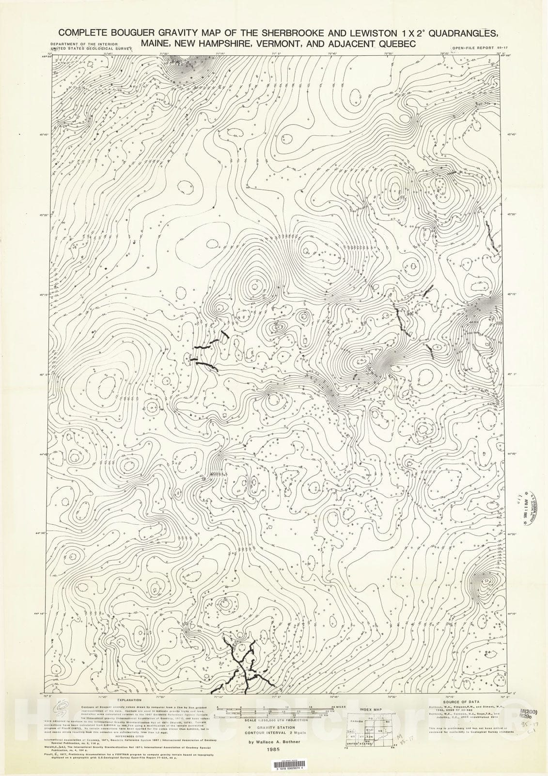Map : Complete Bouguer gravity map of the Sherbrooke and Lewiston one degree x two degree quadrangles, Maine, New Hampshire, Vermont and adjacent Quebec, one985 Cartography Wall Art :