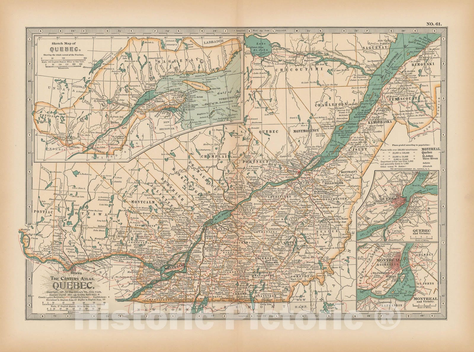 Historic Map : Quebec 1897 , The Century Atlas World , Vintage Wall Art